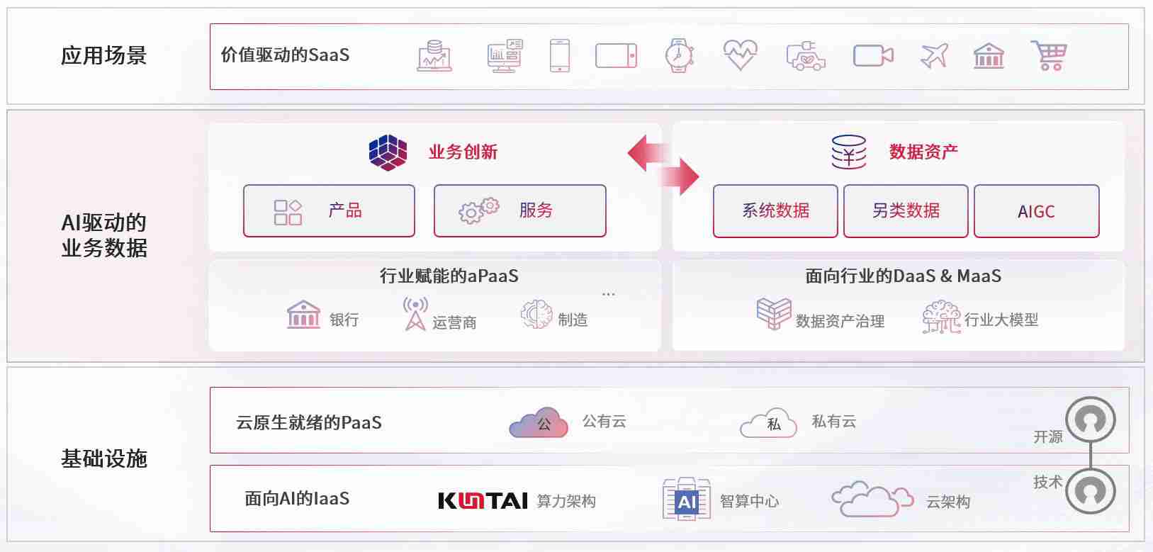 数字时代,,,,围绕企业数字化转型的关键要素,,,,尊龙时凯数码开创性的提出数云融合战略和技术体系框架,,,着力在云原生、、、数字原生、、、、AI原生和信创产业上架构产品和服务能力,,,为处在不同数字化转型阶段的快消零售、、、、汽车、、金融、、、医疗、、政企、、、教育、、运营商等行业客户提供泛在的敏捷IT能力和融合的数据驱动能力,,构建跨界融合创新的数字业务场景和新业务模式,,,助力企业级客户建立面向未来的核心能力和竞争优势,,,,全面推动社会的数字化、、、、智能化转型升级。。
